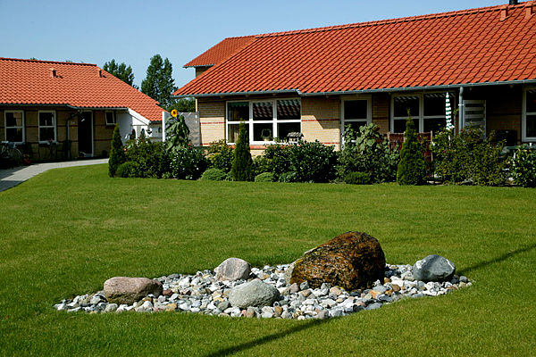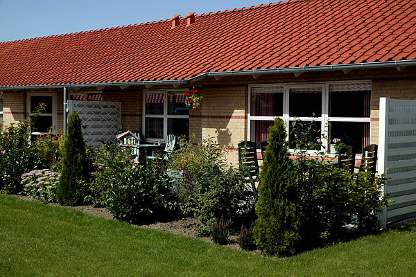 Der er lille nem have til stueboligerne samt overdækket terrasse. Til 1. sals lejlighederne er der en stor overdækket altan. Der er udhus til alle lejemål samt beboerhus, containergård, cykelskur og parkeringsplads i afdelingen.